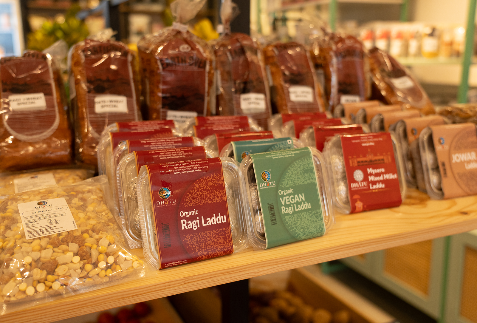 Dhatu Stores, located in Mysore and Bangalore, are the retail extension of Dhatu Organics, offering a carefully curated range of high-quality organic and natural products. From sprouted flours, nut butters, and millet-based ready-to-cook and ready-to-eat foods to fresh organic vegetables and organic dairy products, the stores bring together wholesome everyday essentials. Working closely with local farmers, Dhatu Stores support sustainable sourcing while offering products from trusted organic brands. Every offering reflects their philosophy of being Rooted in Tradition, Guided by Science.