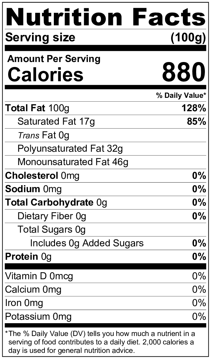 Dhatu Groundnut oil is cold pressed, raw and is not refined. In cold pressed method, peanuts are crushed to force the oil out and does not involve high heat application. This results in the retainment of natural flavour and nutrition of peanuts in the oil. The smoke point of raw groundnut oil is around 160 C, and makes it an ideal choice for medium heat or raw cooking. A tablespoon of groundnut oil contains about 11% RDI of Vitamin E. It is also rich in heart healthy monounsaturated fatty acids (MUFAs) and polyunsatured fatty acids (PUFAs).