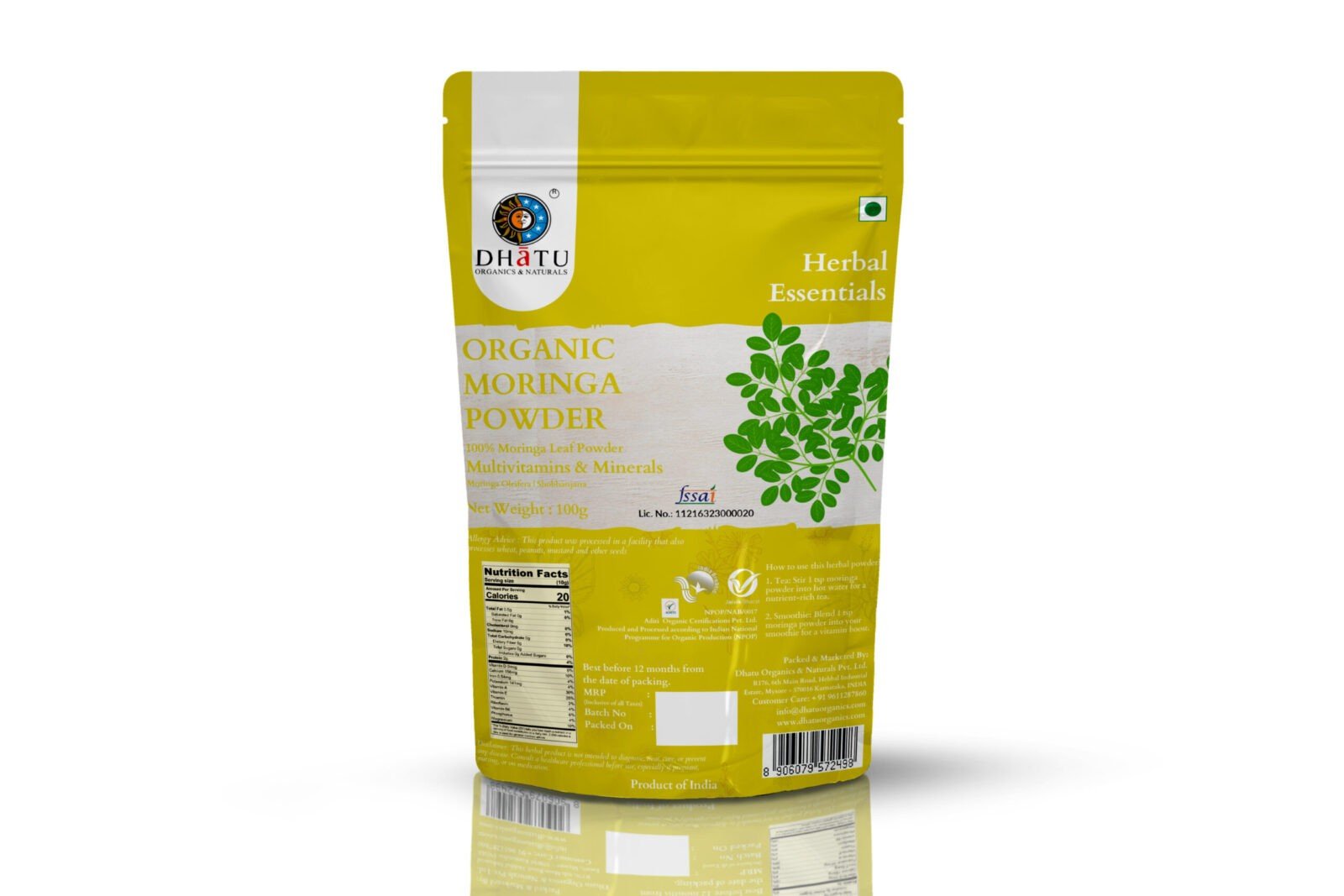 - Combine half a teaspoon of Moringa powder with smoothie/juice / water and enjoy. Add flavors as desired.