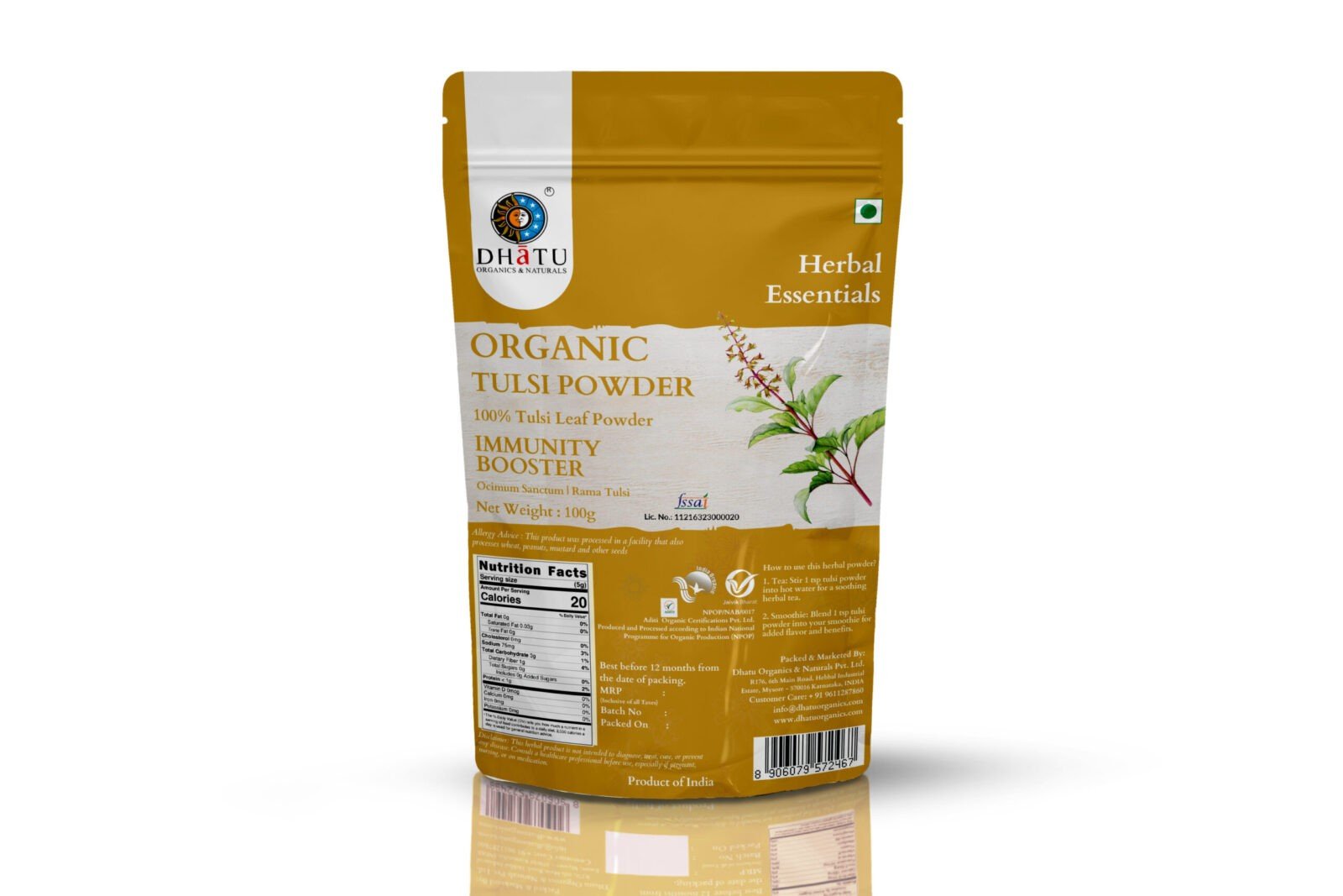 IMMUNITY BOOSTER Tulsi, or Holy Basil is different than the basil we know. It is originally from India and has been used in Ayurvedic medicine for thousands of years as an ?adaptogen? to counter life’s stresses. It is considered a sacred?plant by the Hindus and is often planted around Hindu shrines. The medicine is made from the leaves, stems, and seeds of the tulsi plant. On thegoodgoodshop.com , you?get it in its pure powdered form, with nothing added to it! Here are some of the hundreds of benefits of Holy Basil: ?? Supports healthy hair growth ?? Boosts metabolism and aids weight loss ?? Effective against high blood pressure ?? High Immunity Booster ?? Anti-stress / Antioxidant / Hepatoprotective / Immunomodulator / Anti-inflammatory, Antibacterial / Antiviral / Antifungal / Antipyretic / Antidiuretic / Antidiabetic Directions for use: ?? Take one-third teaspoon of Tulsi leaf powder with one cup of water after meals ??You can add water to it, make a paste, and use it as a super effective face mask!